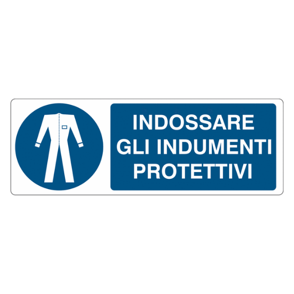 Cartello in alluminio “Indossare gli Indumenti Protettivi”.