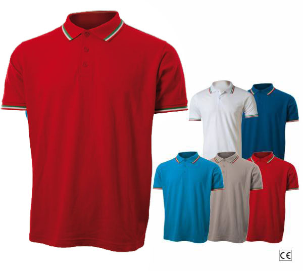POLO CON RIGA TRICOLORE 100% COTONE PIQUET